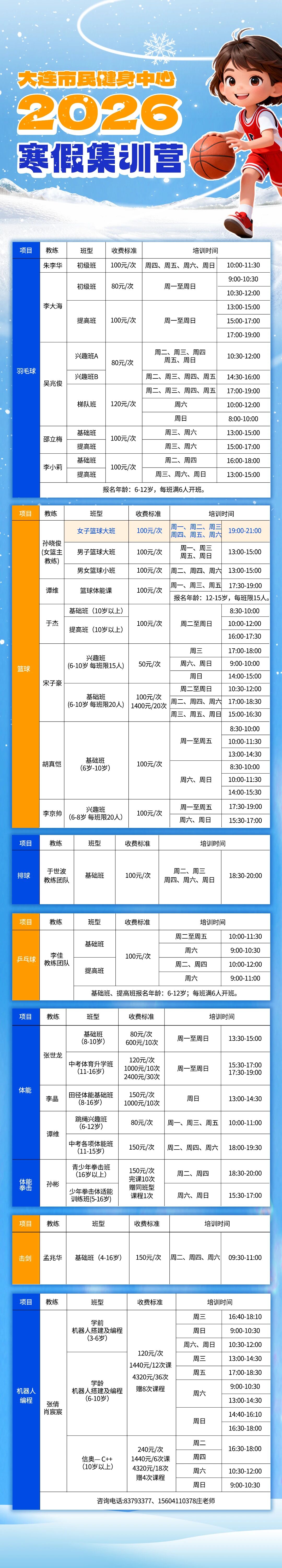 这个冬天,告别平庸!大连市民健身中心2026寒假集训营热力启航!
