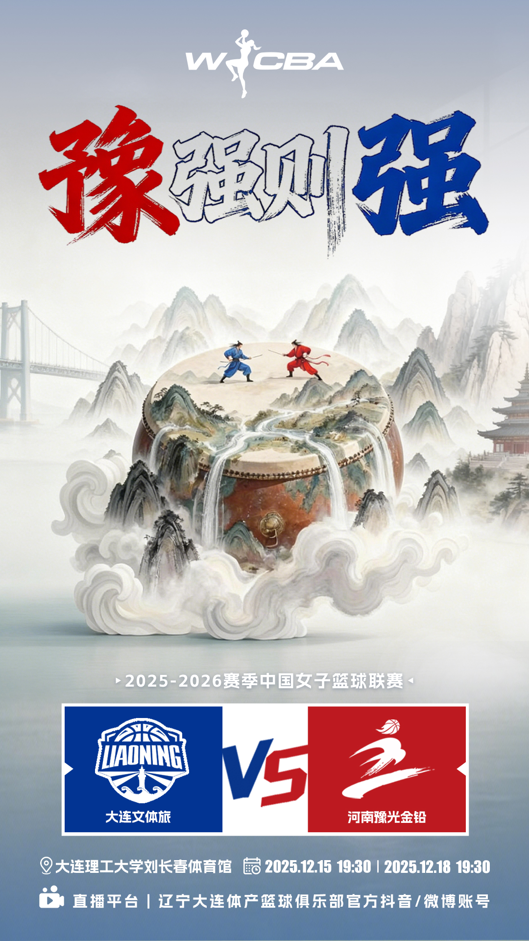 渤海风起潮声激荡,星海湾畔自有铿锵回响。2025-26赛季WCBA常规赛战意正酣,大连文体旅女篮在开局四连胜后回归主场,迎战劲旅河南豫光金铅女篮。连胜不是终点,而是奔赴更高山峰的起点。面对强敌,唯有更坚定、更团结、更勇毅,方能在硬仗中淬炼真金——豫强则强,主场当刚!愿姑娘们以主场为盾,以信念为矛,迎难而上,打出属于大连文体旅女篮的坚韧与光芒!12月15日19:30,官方抖音、微博账号全程直播,我们主场不见不散!