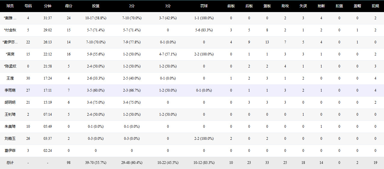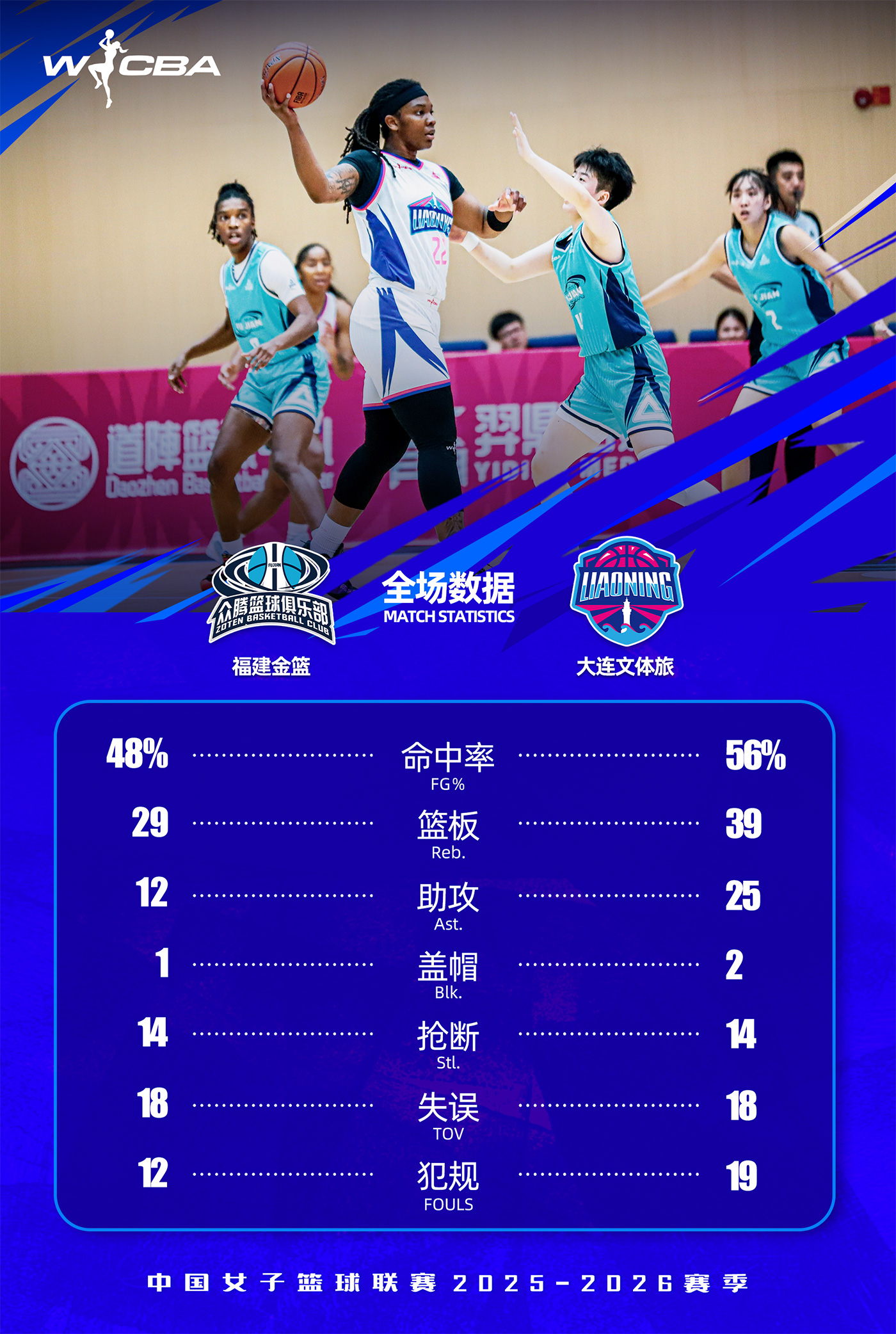 北京时间2025年12月29日19时30分,2025-26赛季WCBA常规赛第十轮展开较量,大连文体旅女篮客场对阵福建金篮女篮。全场比赛,大连文体旅女篮多点开花,始终掌握场上主动,最终98:82战胜福建金篮女篮。