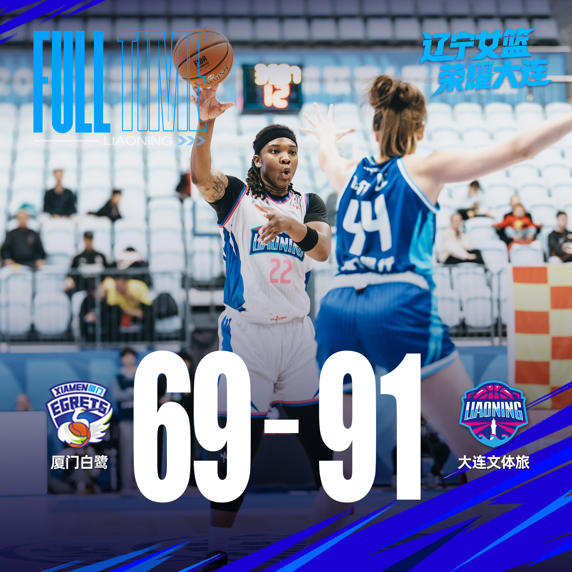 末节开始,大连文体旅女篮依然保持着高强度的比赛专注度,王钊琦突破上篮率先取分,随后胡玥明内线强攻打成“2+1”,继续扩大领先优势。阿伦、吴爽、胡玥明在外线连续得分,彻底锁定胜局。全场比赛结束,大连文体旅女篮91:69战胜厦门白鹭女篮!