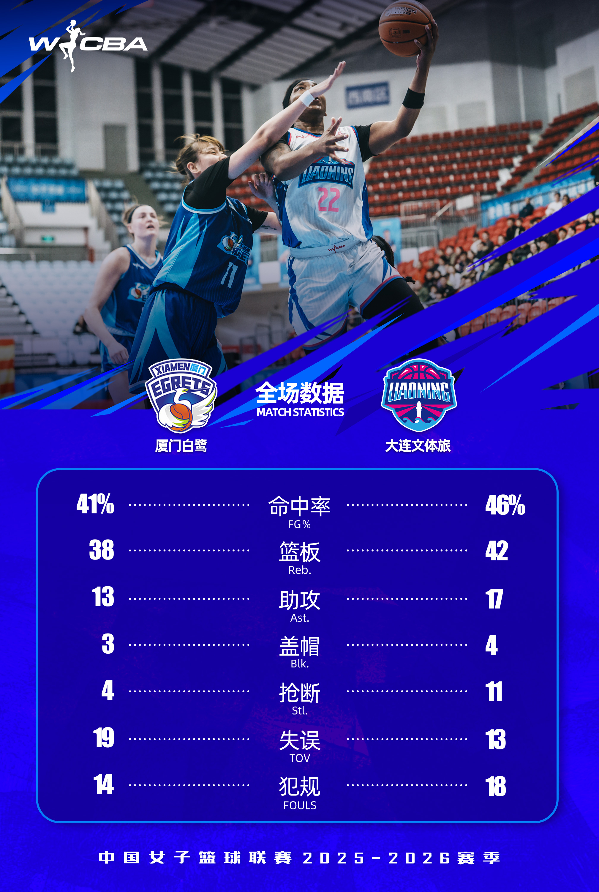 北京时间2026年1月1日19时30分,2025-26赛季WCBA常规赛第十一轮,大连文体旅女篮客场对阵厦门白鹭女篮。全场比赛,大连文体旅女篮展现出强大的整体实力与火热手感,攻防两端全面压制对手,最终大连文体旅女篮91:69战胜厦门白鹭女篮,用一场酣畅淋漓的胜利为2026年开年献礼!
