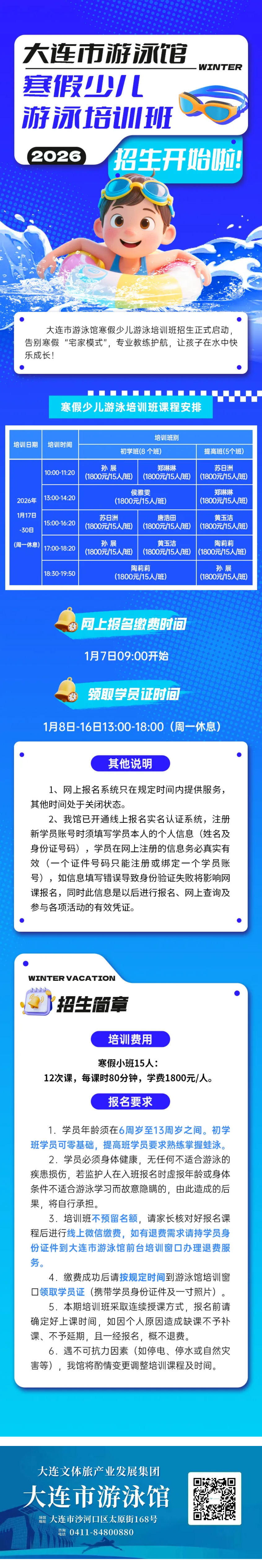 大连市游泳馆寒假少儿游泳培训班招生开始啦!