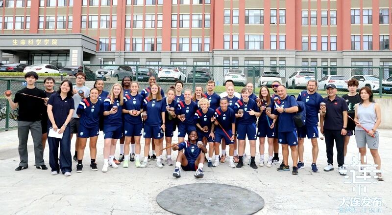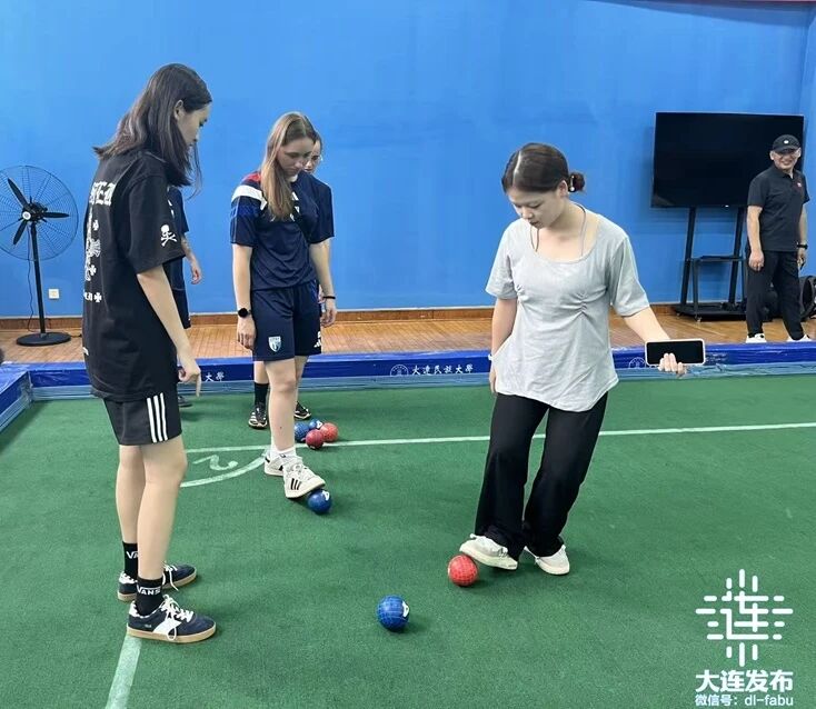 当日下午,上法兰西综合理工大学女子足球队的二十多名队员和教练员,来到大连民族大学开发区校区,与大连民族大学师生就中国传统民族体育运动蹴球和陀螺,展开了一场生动有趣的交流和对抗。