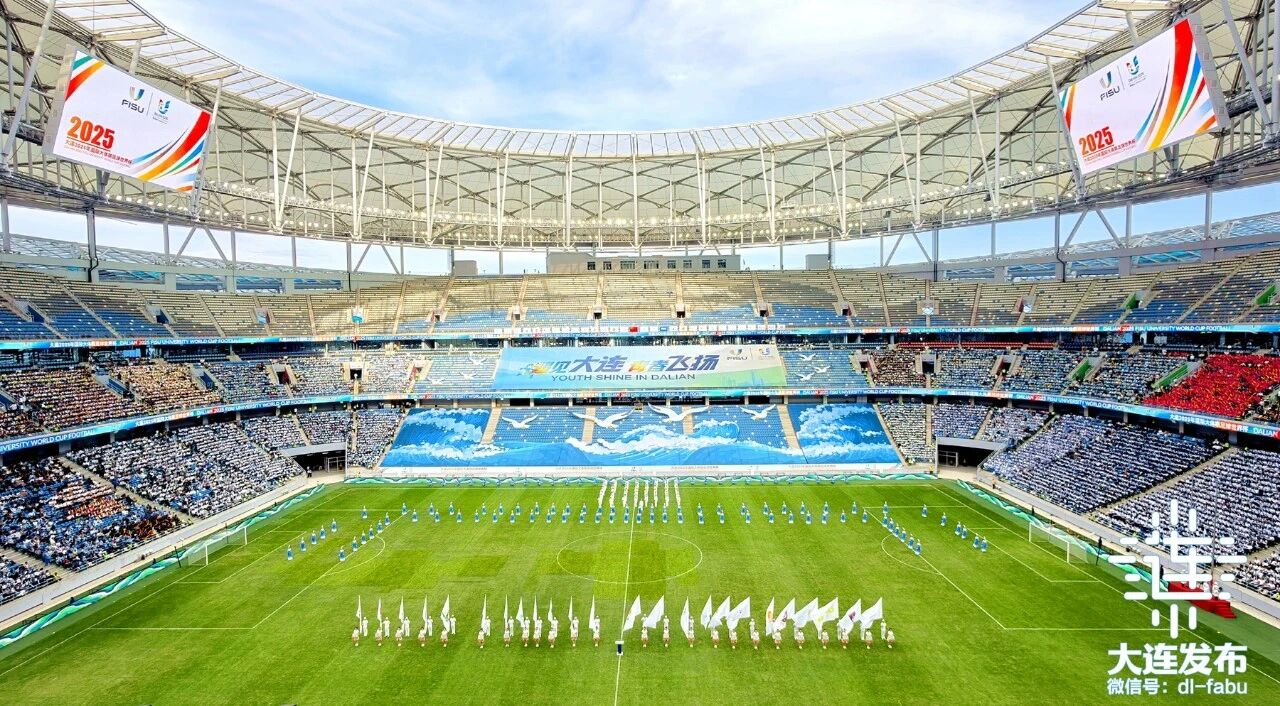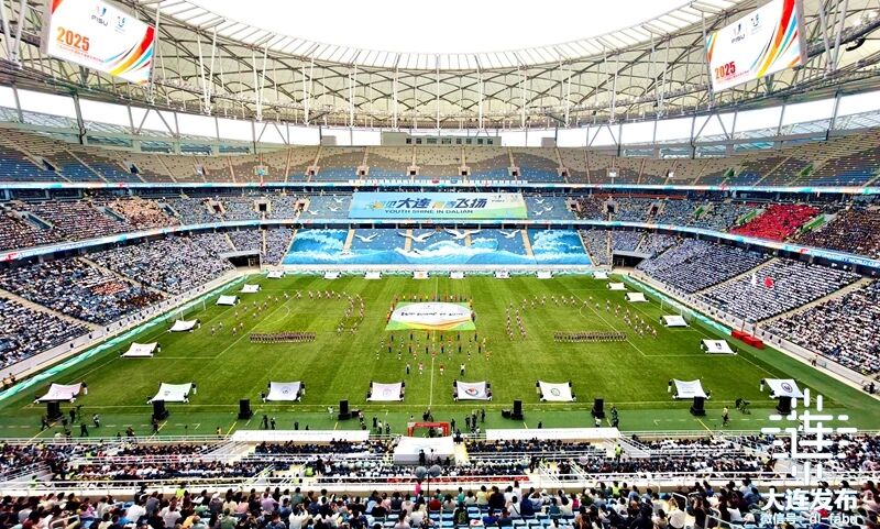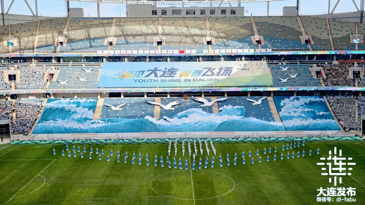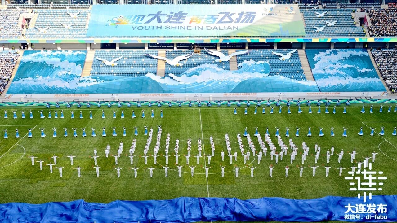 承担开场仪式表演的,除了来自大连7所高校的1200多名大学生外,大连市童声合唱团的孩子们手持大赛吉祥物奔跑入场,尽显大连儿童的蓬勃朝气;在《茉莉花》的表演中,来自大连歌舞剧院的演员们,以曼妙的舞姿诠释中国传统文化的独特魅力;大连杂技团在主题曲《我们要胜利》中融入青春洋溢的舞蹈,全程活力四射,将现场氛围推向高潮。