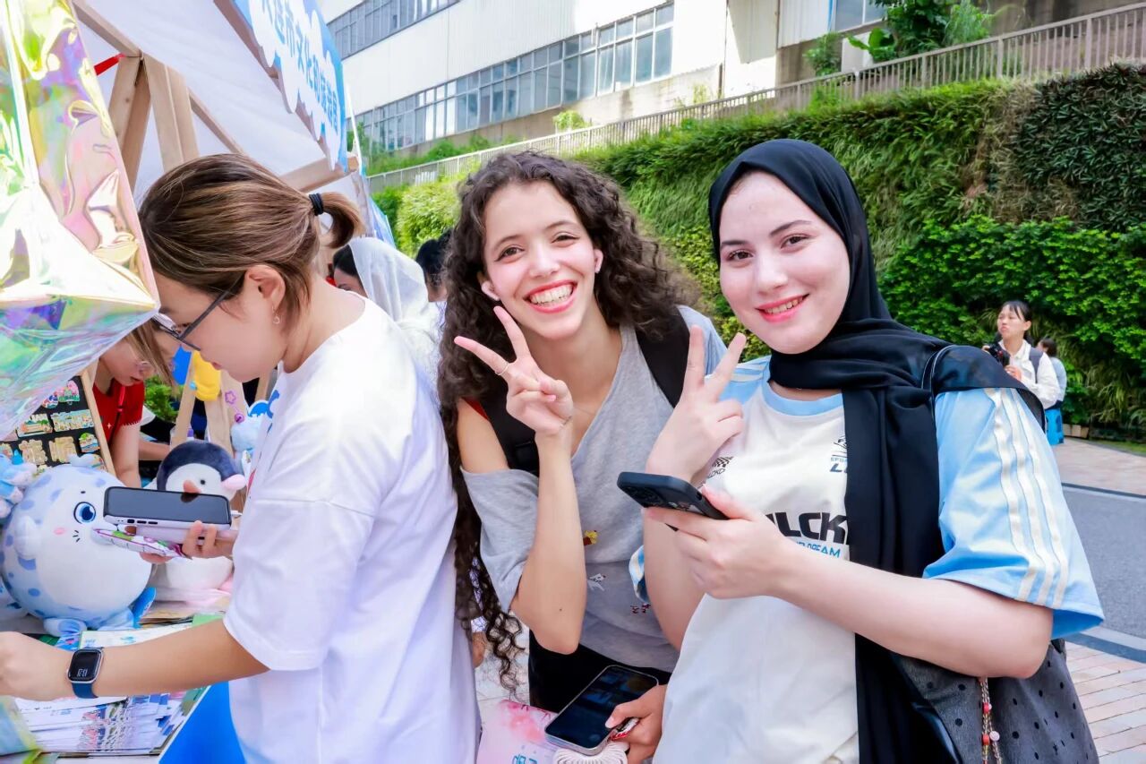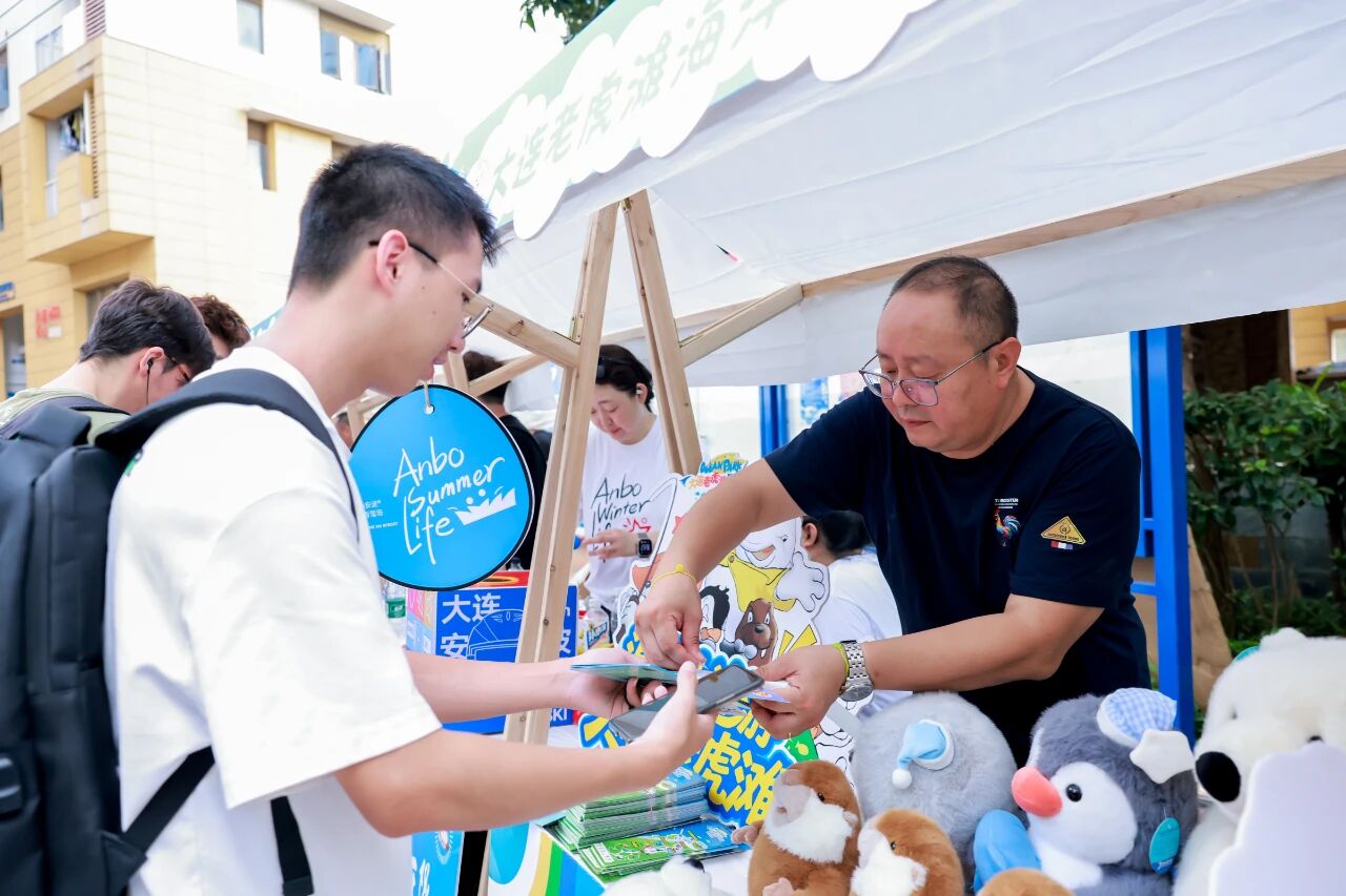 集团精心打造的文旅主题花车市集成为全场焦点。大连老虎滩海洋公园带来海洋萌宠IP周边,大连森林动物园带来了原创周边纪念品及特色印章,大连青旅国际旅行社提供精品线路咨询,共同展现集团文旅资源的多元魅力,多位大连籍学子主动担任“家乡推荐官”,为大连热情代言,吸引众多学子驻足交流。