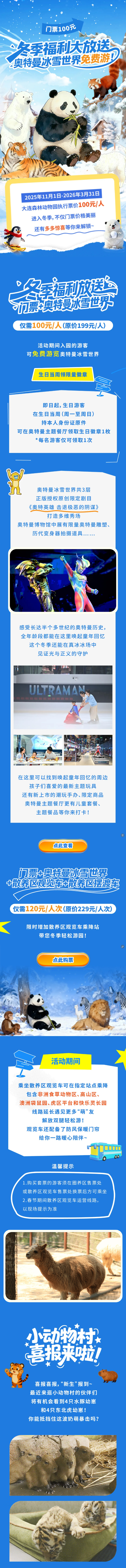 【动物园门票100元】冬季福利大放送,奥特曼冰雪世界免费游!