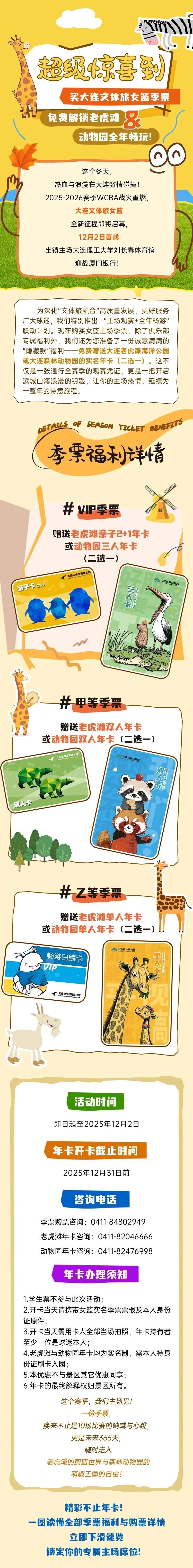 大连文体旅女篮季票重磅福利来袭,老虎滩&动物园免费畅玩一整年! 2025-11-27