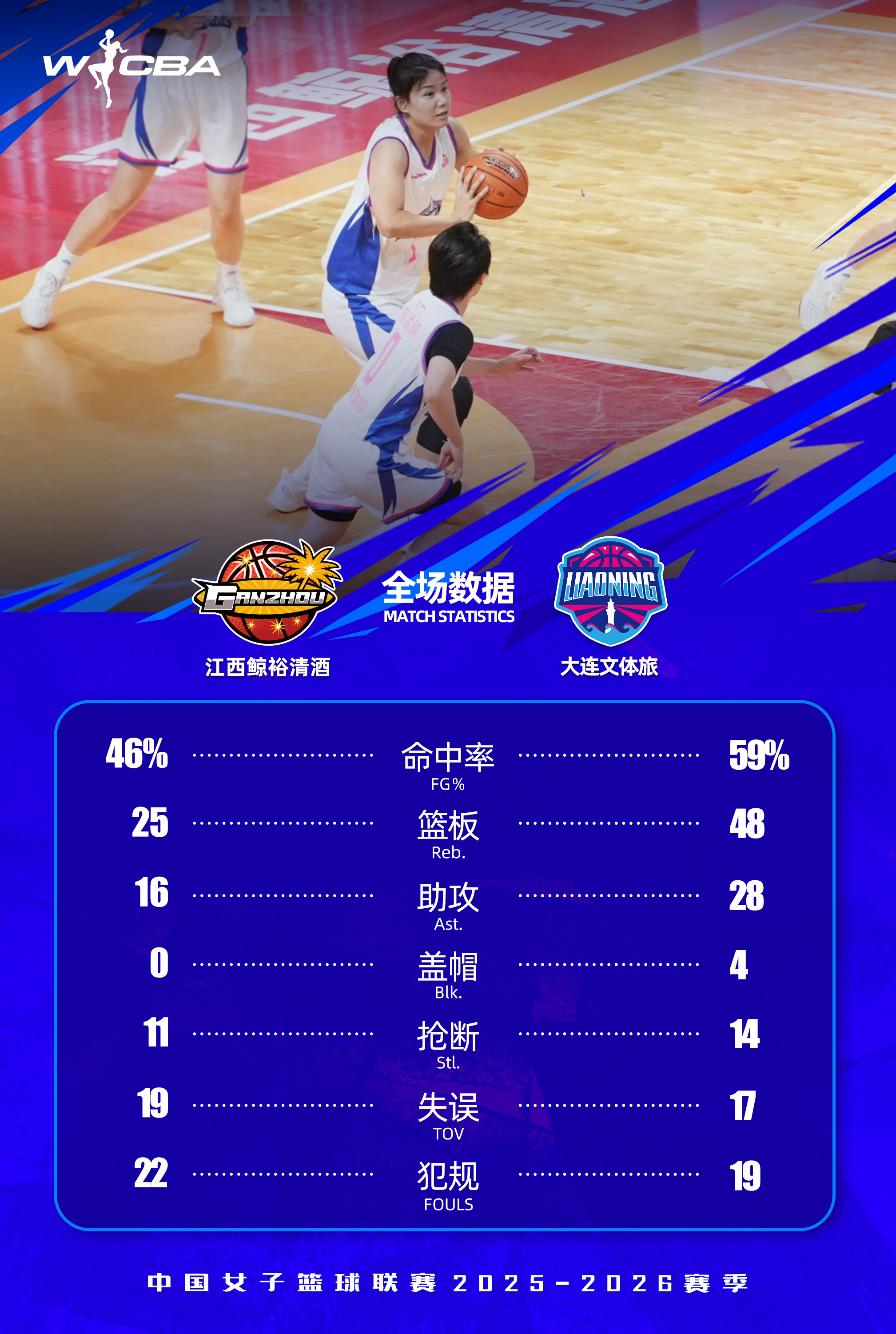 末节开始,大连文体旅女篮派出更多轮换阵容。王一彤登场即贡献得分,王滢命中三分,胡玥明与葛伊菲延续良好手感。球队依旧保持着流畅的传导与积极的比赛态度。最终,全场比赛结束,大连文体旅女篮117:91战胜江西鲸裕清酒女篮,为本赛季第一阶段的客场征程画上圆满句号。