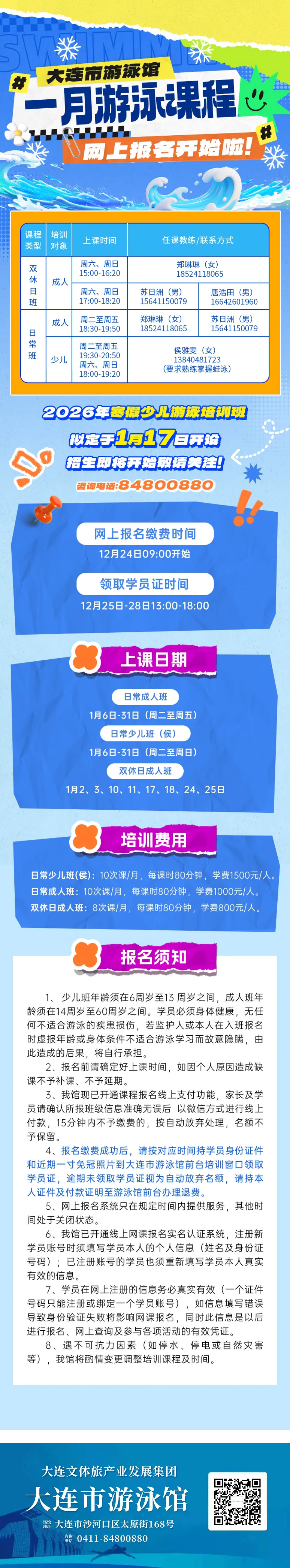 大连市游泳馆一月游泳课程网上报名开始啦!