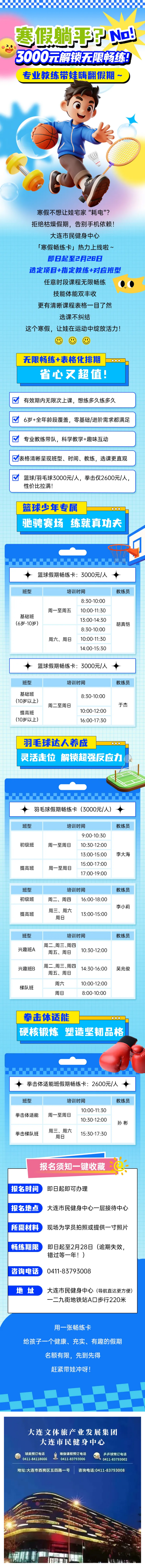 大连市民健身中心「寒假畅练卡」火热上线!专业教练带娃嗨翻假期~