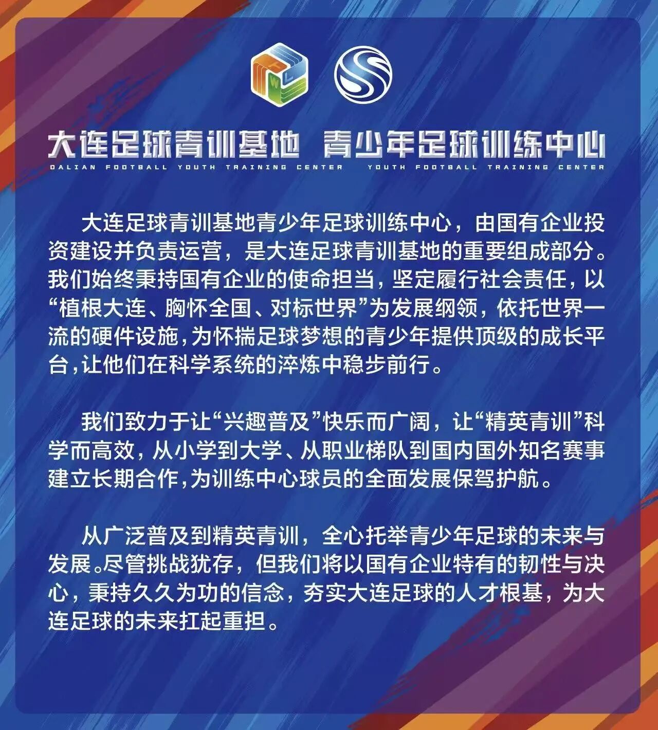 作为中国足球青训体系的关键一环,大连足球青训基地训练中心的成立,进一步为大连青训注入新动能。中心积极践行体教融合,依托“普及+赛事”双轨驱动,持续提升青训综合水平,让足球运动真正成为促进青少年全面成长的平台,为足球强国战略贡献大连力量。