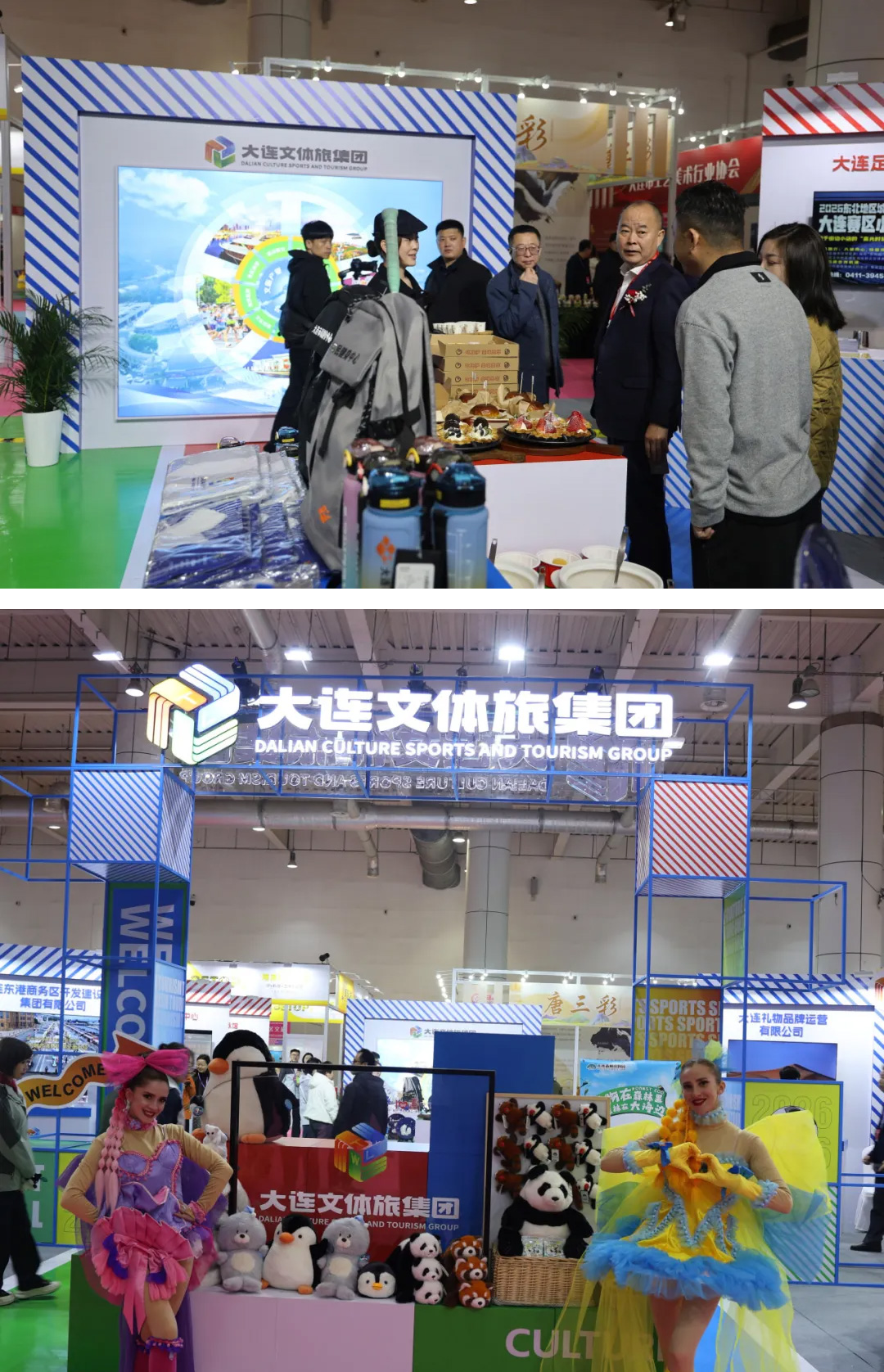 今年,大连文体旅集团再度携旗下14家企业精彩亮相。大连文体旅集团于2025年1月18日正式揭牌,由原大连文化旅游发展集团吸收合并大连体育产业集团改组组建而成,主营业务为文旅业态综合开发与运营管理、赛事场馆综合运营及体育培训、会展及展览服务业等。本次参展企业涵盖文旅、体育、会展三大板块:文旅板块包括老虎滩景区公司、森林动物园公司、东港公司、旅顺文旅公司、滨海旅游公司、大连礼物公司、大连宾馆、大连青旅国际旅行社8家企业;体育板块包括足球青训基地、辽宁女篮俱乐部、市游泳馆、市民健身中心、国际网球中心5家企业;会展板块为星海会展公司,负责世界博览广场的运营管理。