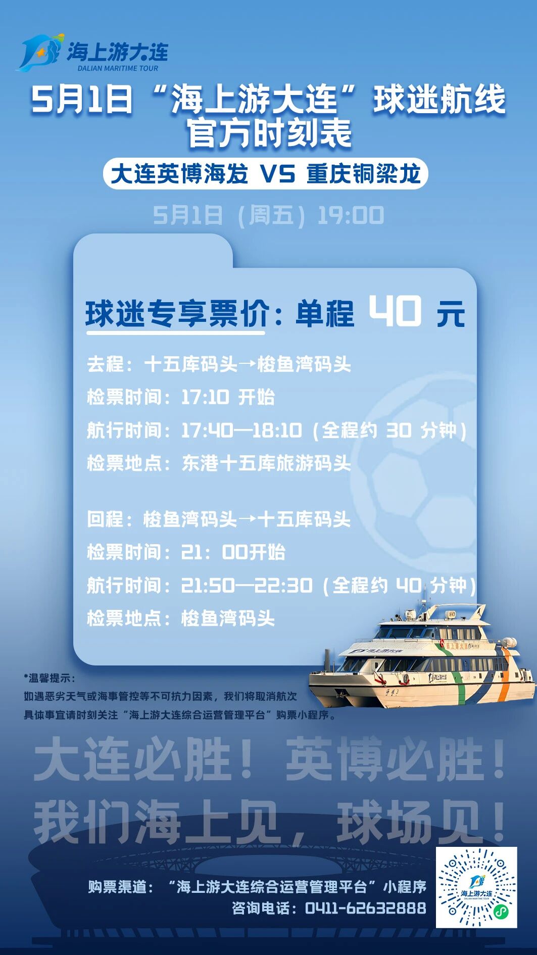 踏浪赴赛 | 5月1日“海上游大连”球迷航线官方时刻表